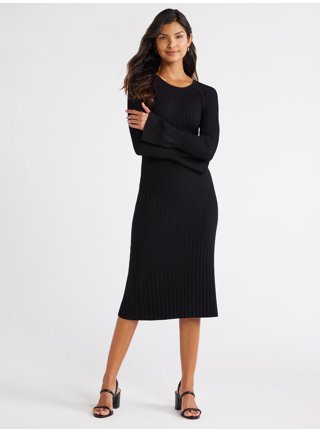 Na Kd Ribbed Knitted Midi Dress In Black Modesens